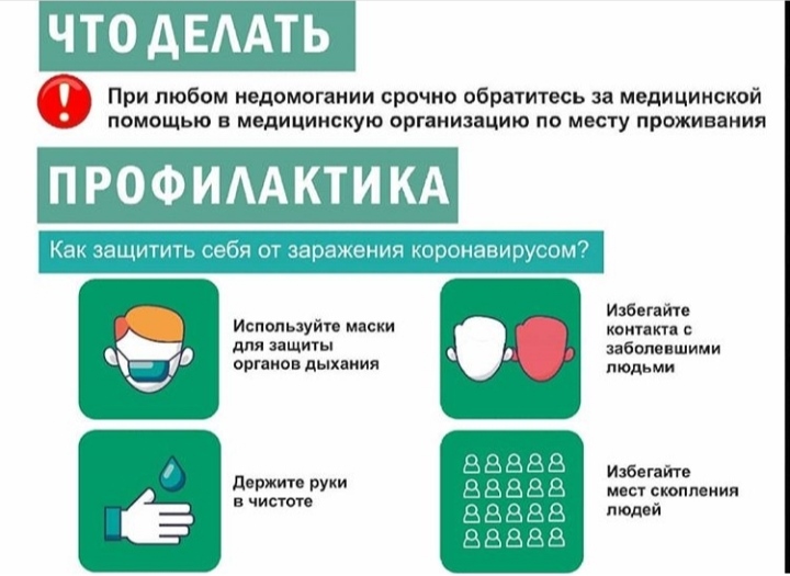 Чтобы защитить себя и окружающих, пользуйтесь проверенной информацией о болезни и принимайте необходимые меры профилактики. Следуйте рекомендациям местных органов здравоохранения. Для предупреждения распространения COVID-19:Соблюдайте правила гигиены рук. Часто мойте руки водой с мылом или обрабатывайте их спиртосодержащим антисептиком для рук.Держитесь на безопасном расстоянии от чихающих или кашляющих людей.Не прикасайтесь руками к глазам, рту или носу.При кашле или чихании прикрывайте рот и нос локтевым сгибом или платком.Если вы чувствуете недомогание, оставайтесь дома.В случае повышения температуры, появлении кашля и одышки обратитесь за медицинской помощью. Вызовите врача по телефону.Следуйте указаниям местных органов здравоохранения. -