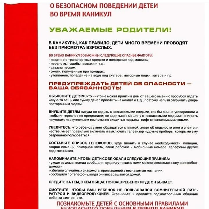О безопасном поведении детей во время каникул. 06.07.2020