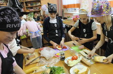 31 октября среди команд 5 классов прошел праздник "Осенний калейдоскоп". Участники мероприятия пели, танцевали и сразились в кулинарном поедике где каждая команда приготовила своё блюдо. Организовали мероприятие учитель музыки Фролова Ляйсан Миннахметова, учитель технологии Волкова Эльвира Фоатовна и учитель информатики Зотова Татьяна Николаевна.
