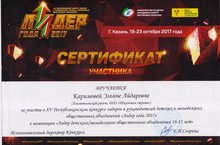 С 19 по 23 октября в городе Казани на базе Молодежного центра "Волга" прошел Республиканский конкурс лидеров и руководителей детских и молодежных общественных объединений «Лидер года - 2017». Наша ученица 10 А класса Каримова Эльина успешно прошла заочный этап конкурса и попала на очный конкурс, где получила много опыта, новых знакомств и учла все ошибки и рекомендации, которые ей помогут при участии в следующем году!