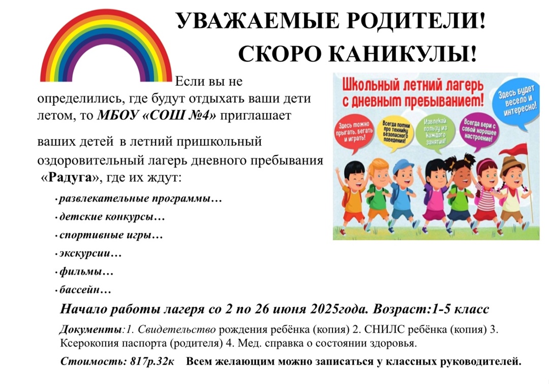 МБОУ «СОШ №4» объявляет о начале занятий