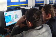 Детям была показана лекция-обращение представителей ведущих ИТ-компаний к молодежи, в которой они делятся своим взглядом на перспективу развития информационных технологий, на то, как изменится мир, когда молодые люди закончат вузы, и рассказывают о том, чем ИТ может привлечь молодых людей, мечтающих добиться успеха в будущем. На перемене ребята имели возможность ознакомиться с материалами на стенде: «Профессия программист», «Профессиональный путь программиста», «Великие люди IT», «IT – праздники», «Зарплаты в России». Также учащиеся поработали с тренажерами представленными на сайте http://www.coderussia.ru/index.html#undefined.