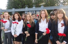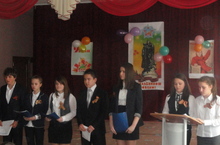9 мая ученики нашей школы приняли участие в возложении венков и цветов к памятнику погибших за Родину и в параде на площади ДК Нефтьче, также пары танцевали танго.