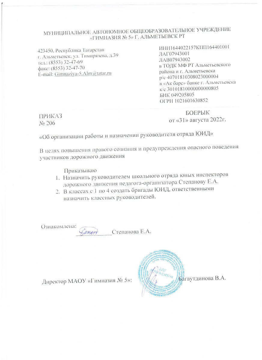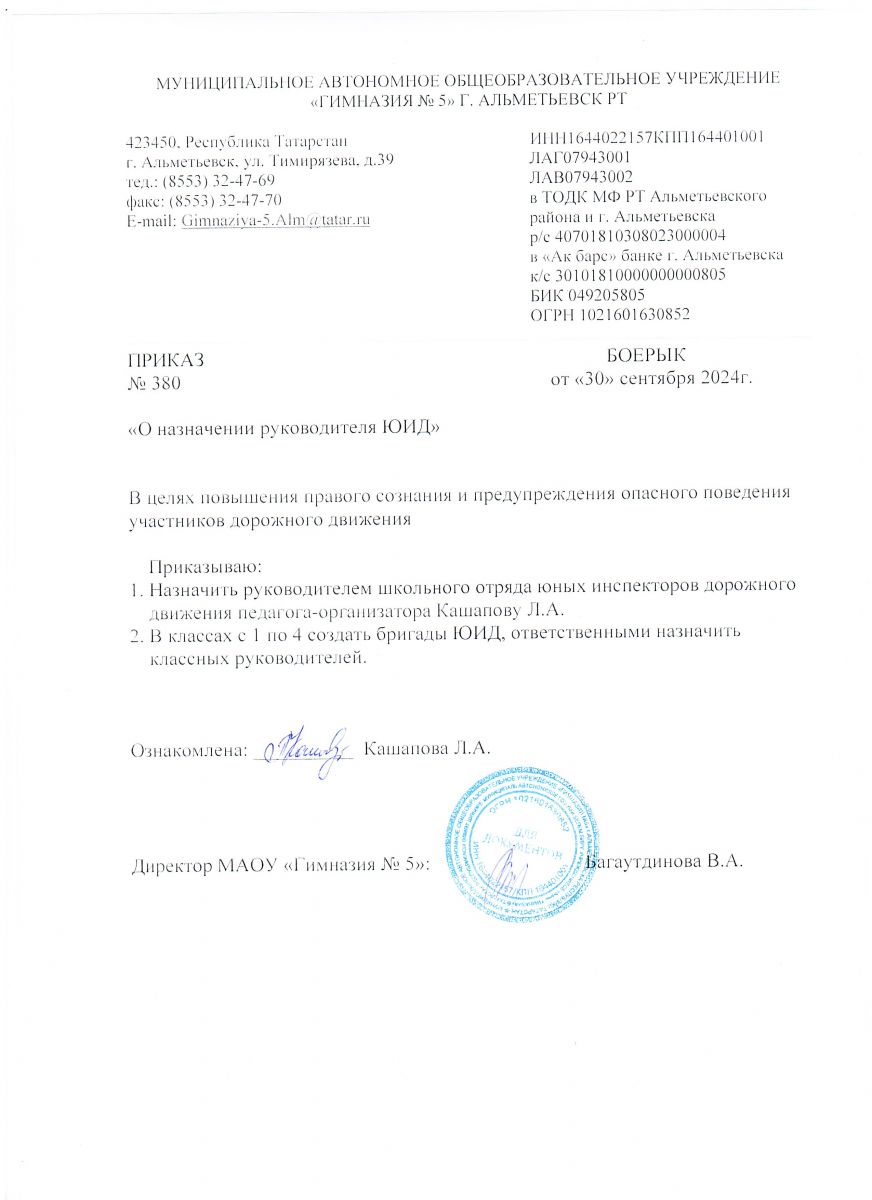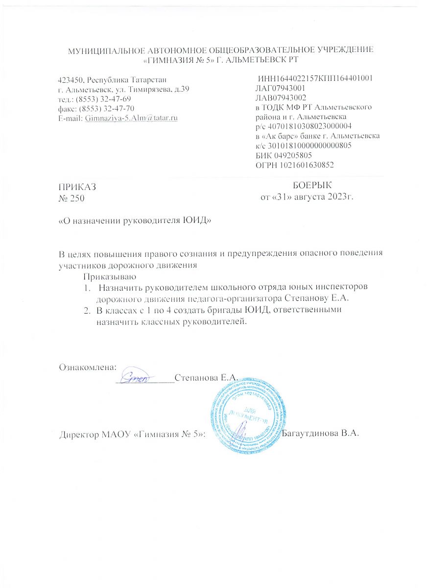 План организации работы МАОУ «Гимназия №5» по профилактике ДДТТ на 2024-2025 учебный год
