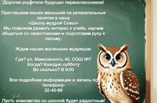Приглашаем ваших малышей на увлекатеотные занятия в нашу "Школу мудрой Совы"