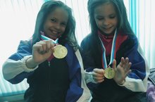 Учащиеся 2В класса - Камалеева Эмилия и Бахтиев Вильдан заняли II место в отборочных Республиканских соревнованиях по фитнес-аэробике.