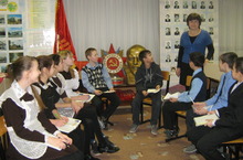 "Геройлар көне"нә багышланган чара. Музейда тарих укытучысы Гатауллина Гөлнара Әнвәр кызы 6 нчы сыйныф укучылары белән.