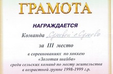 Команда нашей школы "Сулеевец" награждена Грамотой и медалью за 3 место в соревнованиях по хоккею "Золотая шайба" среди сельских команд по месту жительства в возрастной группе 1998-1999 г.р. Поздравяем! Молодцы ребята.
