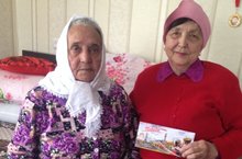 Тыл ветераны Садриева Мөзәянә апаны Бөек Җиңү бәйрәме белән котлау.