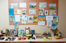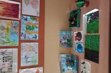 Наша школа приняла участвие в акции по сохранению экологии. Ученики начальных классов подготовили рисунки, среднее звено - поделки.