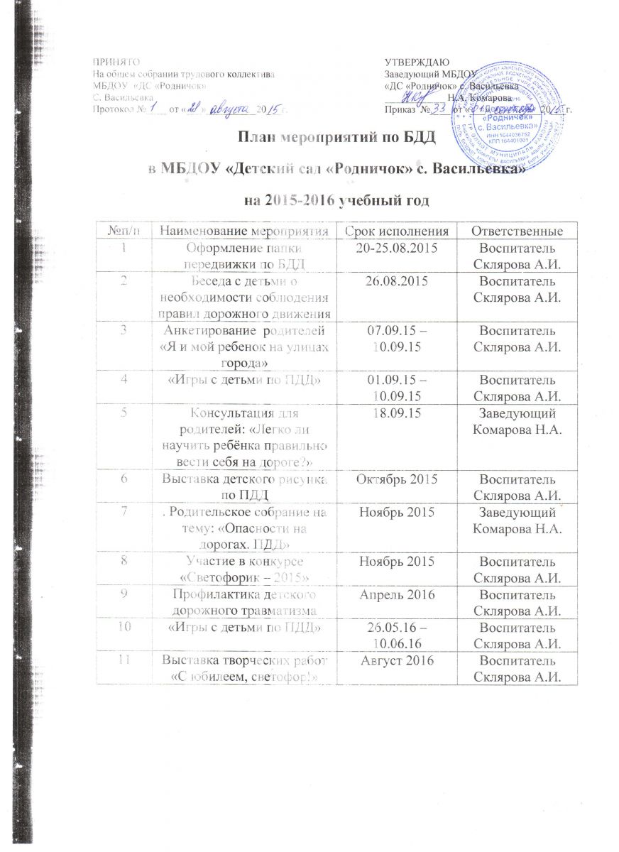 Паспорт дорожного движения МБДОУ "Д/с "Родничок" с. Васильевка"