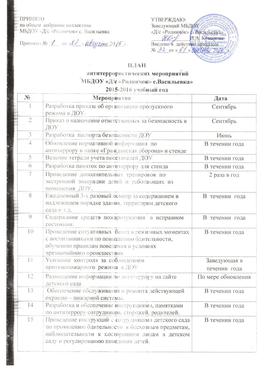 План антитеррористических мероприятий на 2015-2016 уч.год