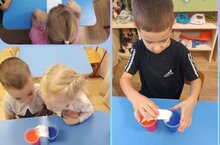 Смешивание цветов всегда вызывает у детей неподдельный интерес! Благодаря опыту дети увидели, что перетекая по салфетке, жидкость в стаканах выравнивается на одном уровне по принципу «сообщающихся сосудов», при смешивании синего и красного цветов получится фиолетовый. Ребята в восторге от увиденного