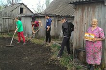 8 нче сыйныф укучылары- Сиринә, Илфат, Ринас, Илсур дәресләрдән соң , Свияжский бистәсендә яшәүче 90 яшьлек Сәгъдә әбинең бакчасын менә дигән итеп казып, тырмалап бирделәр. Әби аларга изге теләкләрен теләде. ( Хисамова Ф.) -