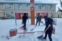 Очистка территорию обелиска от снега. 19.02.2025