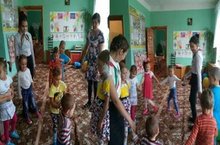 День второй: #Мывместе#Безбергә#ДружныйТатарстан#Мир. Старшеклассники посетили детский сад и организовали разные игры с дошкольниками.