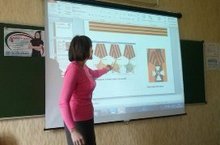 В рамках Недели Добра учитель истории провела урок на тему “Георгиевская лента”. Педагоги и учащиеся школы прикрепили к одежде Георгиевскую ленту. -