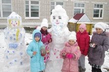 В первый день зимы ребята насладились прогулкой на свежем воздухе и вылепили деда Мороза с внучкой.