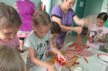 Сегодня состоялся футбольный матч между командами. Лучший игрок- Зиннатуллин Фаниль. Девочки соревновались в фигурных прыжках "резинки". Победитель - Сабирова Зиля. А большой пирог готовили все вместе.