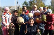 Укучылар, укытучылар һәм техник хезмәткәрләр көче белән мәктәп бакчасыннан көзге уңыш җыеп алынды. -