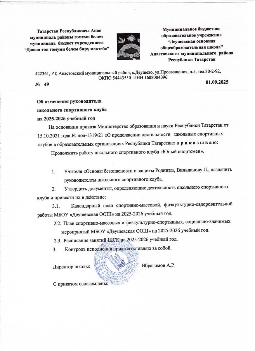 Адрес: 422361, РТ, Апастовский район, с. Деушево, ул. Просвещения, д. № 5