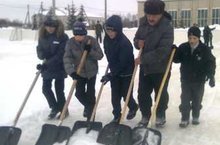 Несмотря на обильные снегопады, территория школы содержится в чистоте. Уборка снега производится школьным травктором, выигранным в рамках республиканского конкурса "Школа после уроков".
