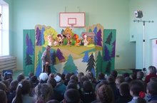 Артисты Татарского Государственного Театра Кукол "Әкият" показали спектакль по произведению А. Алиша " Сертотмас үрдәк" для учащимся 1-6 классов школы.
