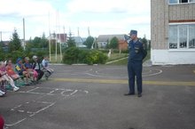Руководитель районного отдела пожарного надзора Ильдар Валиев посетил пришкольный лагерь и провел инструктаж по пожарной безопасности и пожелал успехов, здоровья и благополучия во время летних каникул.