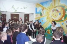 До начало уроков дежурный 8а класс проводит веселую физминутку для учащихся начальных классов.
