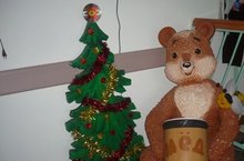 Изделия, сделанные руками кружковцев "Умелые руки" предают нашей школе предновогоднее настроение.