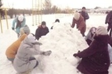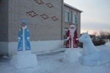 Учащиеся 5- 11 классов вместе со своими учителями украсили школьный двор снежными фигурами.