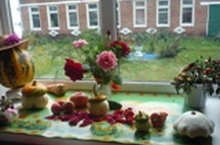 Педагоги школы подготовили методическую выставку " Современные технологии в образовательной практике школы", композицию из цветов "Цветы - радость жизни".