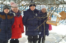Башлангыч сыйныф укучылары үзләре ясап килгән җимлекләрне куйдылар. Аларга һәр көнне чиратлап җим салалар