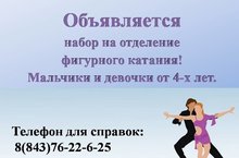 В МБУ Спортивная школа "Алтын алка" осуществляется набор в СО группу по хоккею с шайбой (с 5ти лет) и фигурному катанию (с 4х лет). Желающим записаться обращаться методистам МБУ СШ "Алтын алка" по тел.22-6-25.