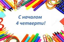 Уважаемые учителя, ученики и родители! Поздравляем вас с началом четвёртой четверти! Надеемся, что каникулы не прошли даром: все отдохнули, набрались сил, готовы к новым маленьким и большим победам. Эта четверть — самая короткая, начинаются трудовые будни. Желаем всем ребятам с новой силой взяться за учёбу и закончить четверть с хорошими результатами! Всем отличного настроения, бодрости, оптимизма, творческих и учебных успехов, интересных дел и отличного здоровья!