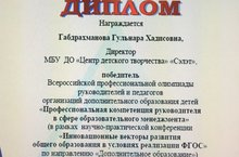 Габдрахманова Гульнара Хадисовна, директор МБУ ДО «Центр детского творчества» «Сэлэт», победитель Всероссийской профессиональной олимпиады руководителей и педагогов организаций дополнительного образования детей «Профессиональная компетенция руководителя в сфере образовательного менеджмента».