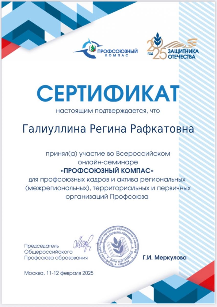 11–12 февраля 2025 года состоялся Всероссийский онлайн-семинар «Профсоюзный компас» для профсоюзных кадров и актив первичных, территориальных и региональных (межрегиональных) организаций Профсоюза.