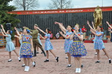 9 мая волонтёры ЦДТ "Сэлэт" приняли участие в праздничном шествии, посвященном Дню Победы. Всем пришедшим на шествие были прикреплены Георгиевские ленты, затем ребята возложили венки у Мемориального комплекса.