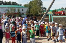 В соответствии с планом работы по обеспечению безопасности всех участников образовательного процесса, в целях повышения безопасности детей и обучению адекватным действиям при угрозе и возникновению пожаров и других чрезвычайных ситуаций, также для практической отработки плана эвакуации детей и сотрудников 25 августа 2016 года в нашем саду представителями МЧС была проведена плановая учеба по сигналу пожарной тревоги.