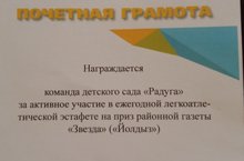 Наши воспитанники из первой средней ,второй средней,подготовительной группы участвовали в очередной 52-ой легкоатлетической эстафете на призы районной газеты «Йолдыз» («Звезда») которой состоялся сегодня .А лучший итог это радость от успехов, общения, хорошая физическая подготовка и настрой на победу. Молодцы!