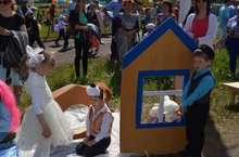 Безнең балалар район балалар сабантуенда Тукай әкиятләре персонажларының күргәзмәсендә катнаштылар һәм мәйдан сәхнәсендә Гәйнуллина Динә белән Каюмов Данияр үзләренең матур җырларын башкардылар.
