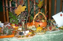 Осень – замечательное время года. Это не только пора дождей, листопада, но и множества мероприятий. Так, 27 октября в нашем детском саду «Радуга» прошла выставка поделок из овощей и фруктов «Осеннее настроение». Одной из главных задач этой выставки является создание условий для развития благоприятных отношений в семье. Основное средство ее решения - совместная деятельность родителей и детей, которая может быть организована в различных формах. Ребята вместе с родителями свои выходные дни посвятили созданию шедевров из даров осени
