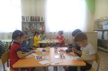 Сегодня дети на занятии учились рисовать фигурки цыпленка красками.