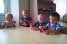 Лепка. Дети ясельной группы на занятии по лепки лепили снегурочку.