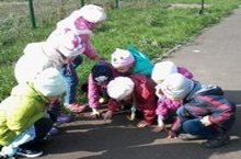 Рассматривание фигур из бросового материала на территории детского сада. Цель: прививать интерес и уважение к ручному труду; развитие связной речи, чувства цвета и эмоциональной направленности детей.