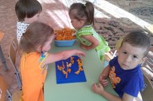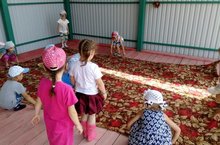 Мы, дети старшей группы, помогаем постелить палас на своей веранде, что бы всем вместе отдохнуть.