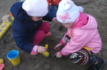После долгой зимы дети старшей группы на песочнице. Так хорошо вместе с друзьями построить песочный замок, испечь куличики и просто посидеть рядышком.