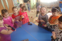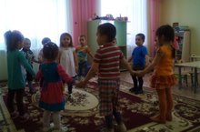 Уртанчылар төркеме татар халык уеннарын яратып уйныйлар. "Ак калач”. Балалар, кулга-кул тотынышып, түгәрәккә басалар. Берсе уртага чыгып баса. Түгәрәктәге балалар, җырлый-җырлый, калачның ничек пешүен, җәелү-кысылулуарын кул хәрәкәтләре белән күрсәтәләр:Самираның туган көненәБез пешердек ак калачМенә шулай ул биек,Менә шулай тәбәнәк,Менә шуның киңлеге,Менә шуның тарлыгы.Ак калач, ак калач,Теләгәнеңне сайлап кач!(Бала үз урынына берәүне сайлап чыгара да ,түгәрәктәгеләргә кушыла). Уен-җыр шулай дәвам итә. -