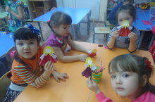 На занятие по аппликации дети старшей группы сделали из бумаги матрешек.Кукла славная - матрешка,Где-же ручки,Где-же ножки?Ах, какие щечки,Красные, румяные,На фартучке цветочкиИ на сарафане. -