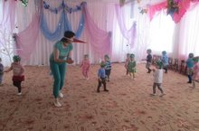Дети ясельной группы на занятиях по физическому развитию любят играть в различные подвижные игры. Движения являются биологической потребностью растущего организма, без удовлетворения которой ребёнок не может правильно развиваться и расти здоровым. Они способствуют развитию всех систем организма. Улучшается не только здоровье, но и эмоциональная, волевая, познавательная сферы малыша. Чем разнообразнее движения, тем больше информации поступает в мозг, тем лучше интеллектуально развивается ребёнок. Сегодня на занятии малыши играли в подвижную игру «Цапля и лягушки». -